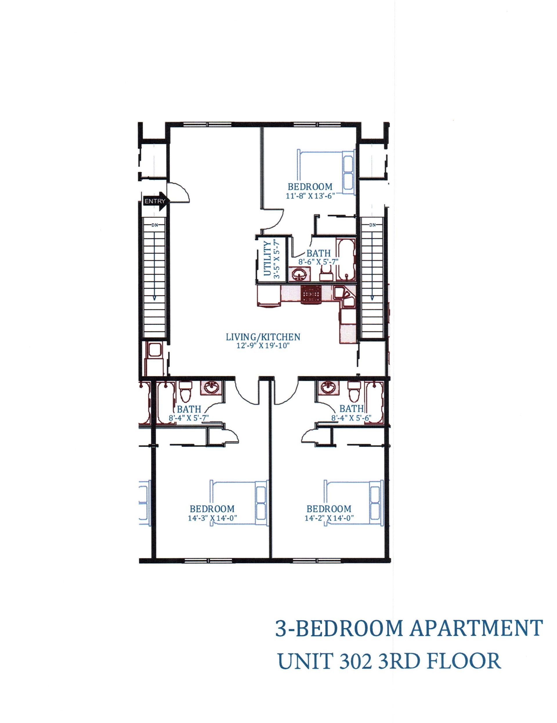 3 Bedroom & 3 Bathroom Single Floor Apartment, Blinds on All Windows, Hardwood-style Plank Flooring, Kitchen & Bath w/ Tiled Accents, Furnished Living Room, Kitchen & Bedroom, Sprinkler System