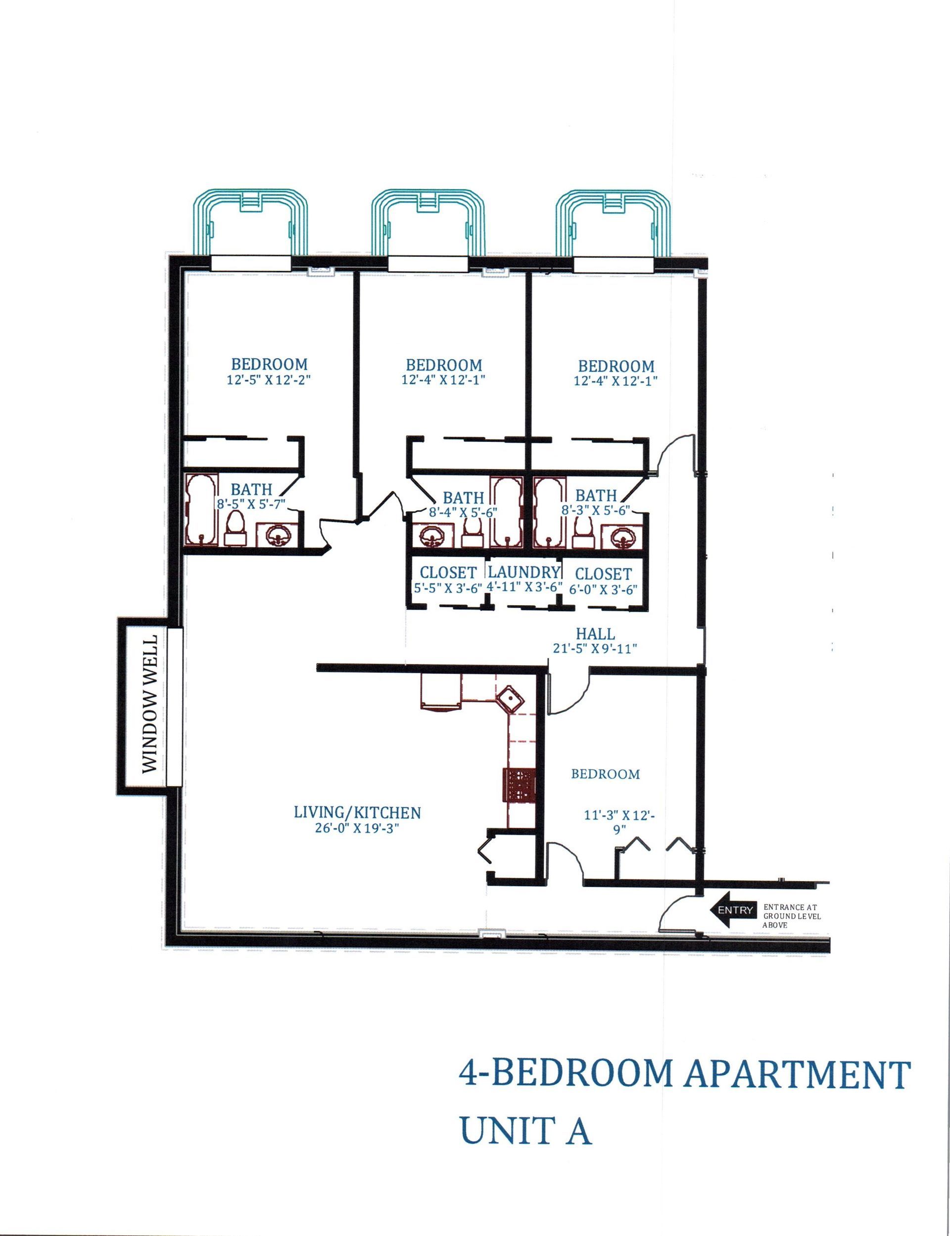 4 Bedroom & 4 Bathroom Single Floor Apartment, Blinds on All Windows, Hardwood-style Plank Flooring, Kitchen & Bath w/ Tiled Accents, Furnished Living Room, Kitchen & Bedroom, Sprinkler System