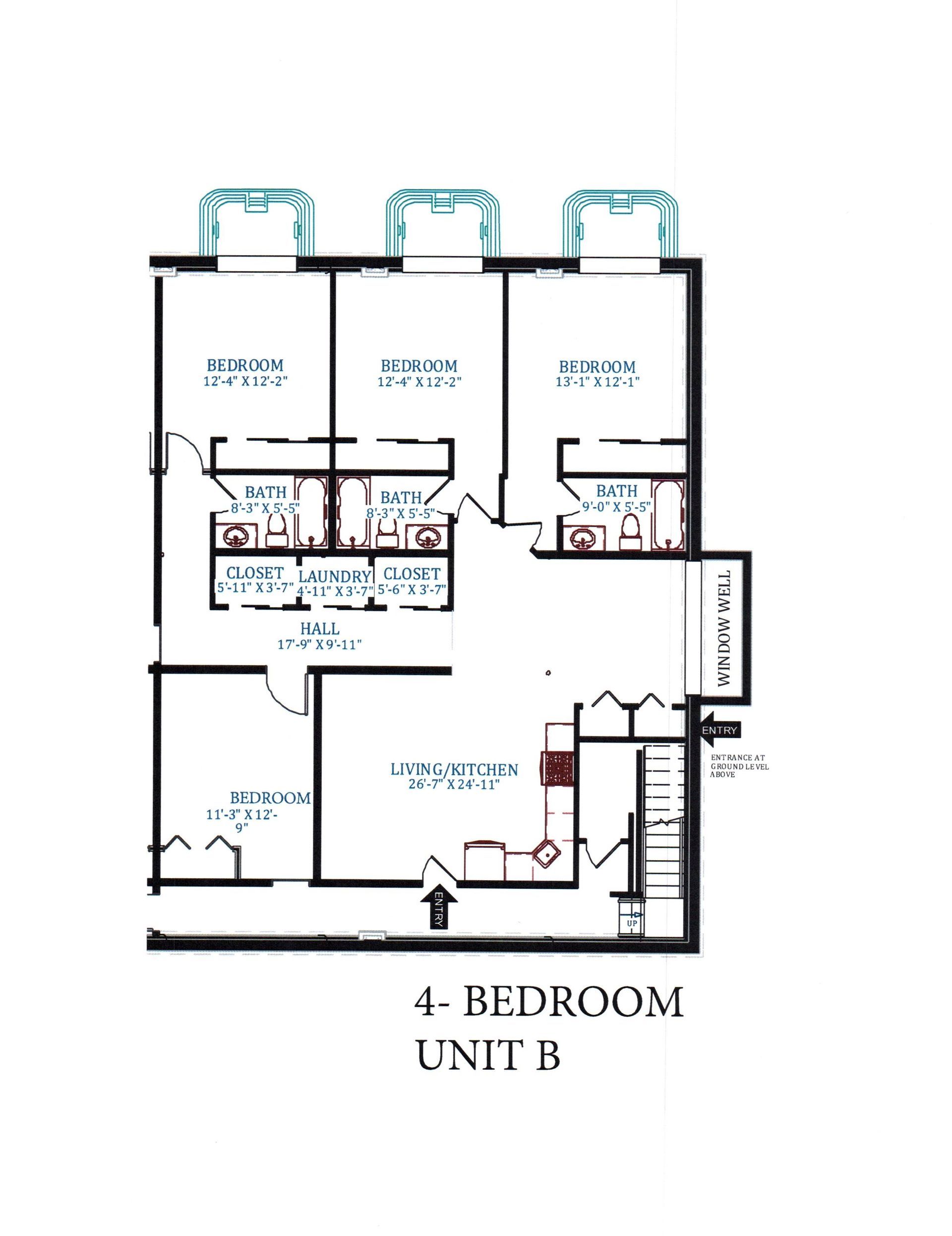 4 Bedroom & 4 Bathroom Single Floor Apartment, Blinds on All Windows, Hardwood-style Plank Flooring, Kitchen & Bath w/ Tiled Accents, Furnished Living Room, Kitchen & Bedroom, Sprinkler System