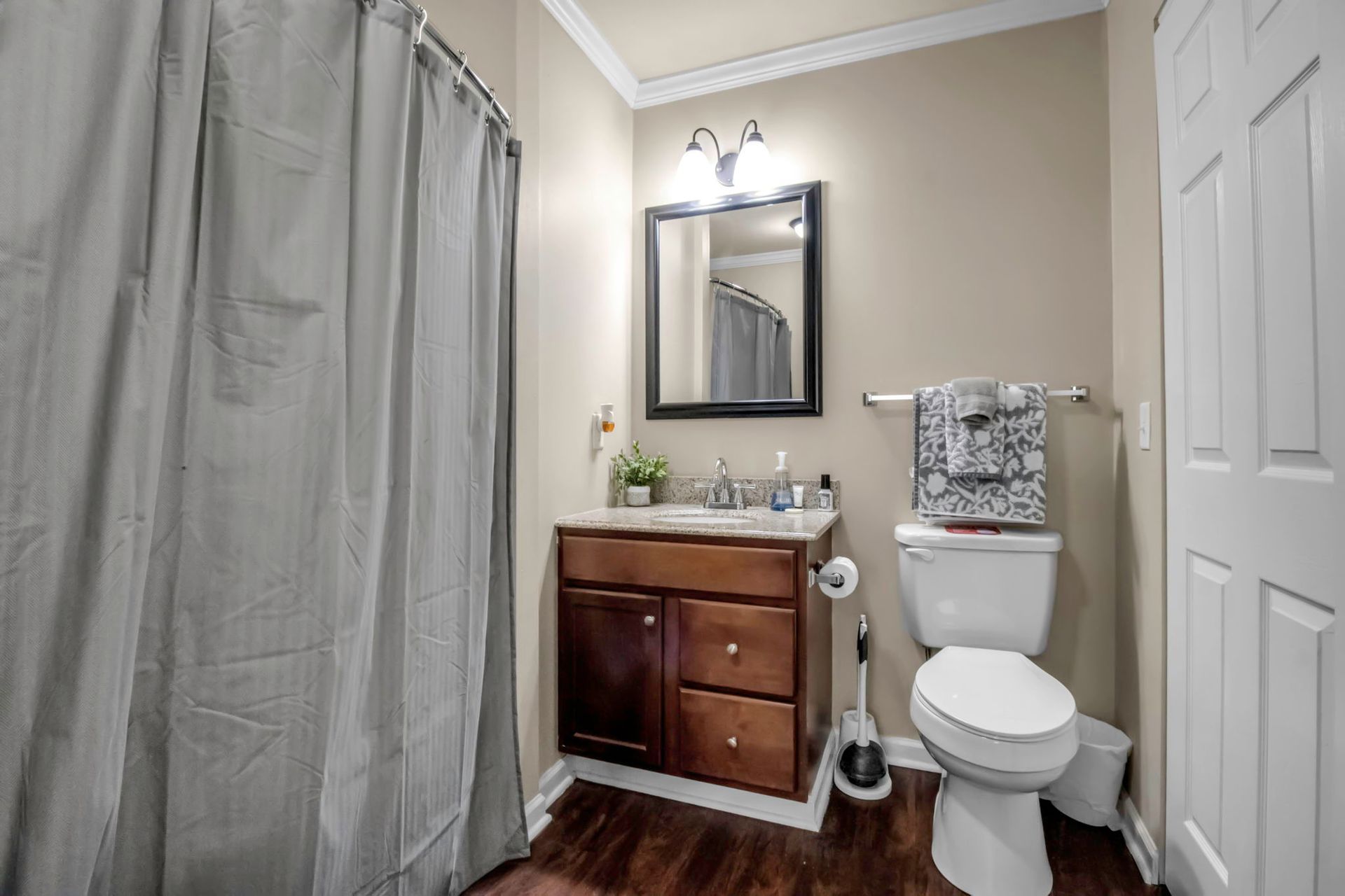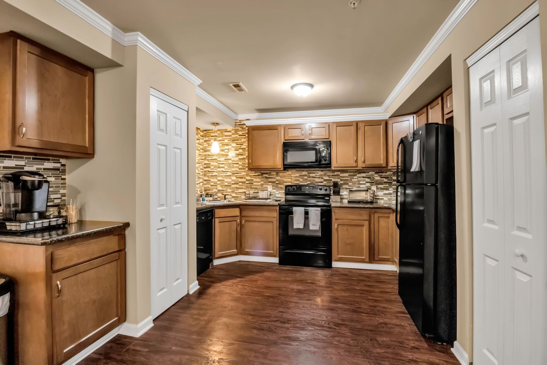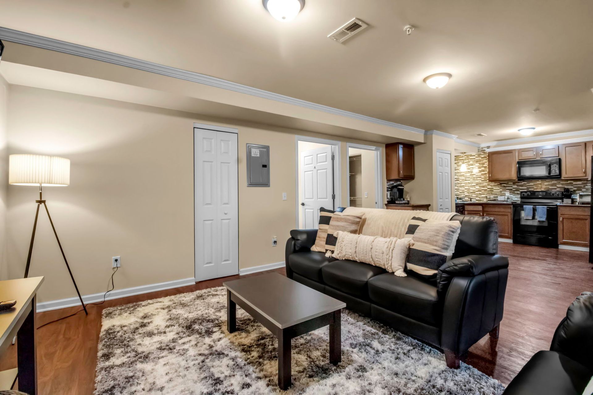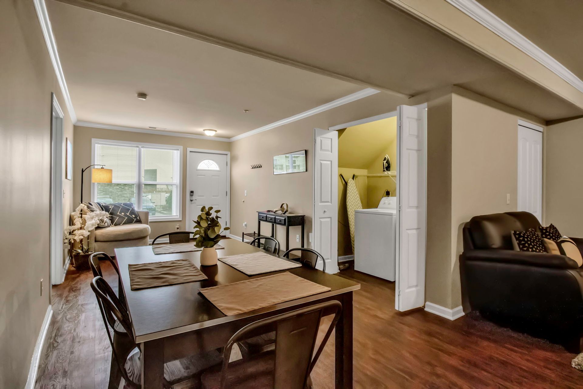 This spacious, first-floor apartment features 3 bedrooms and 3 bathrooms, a fully equipped kitchen, and an in-unit washer/dryer. Relax and unwind with Roku TVs in the living room and all three bedrooms. With three dedicated parking spaces and an onsite gym, you'll have all the amenities you need for a comfortable stay.