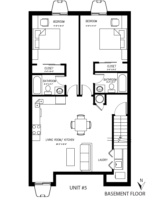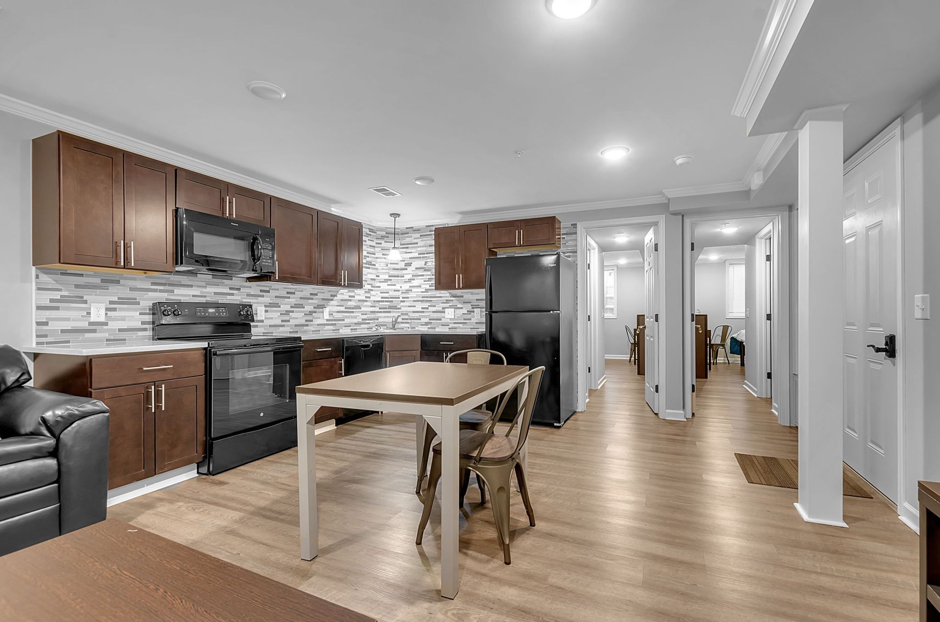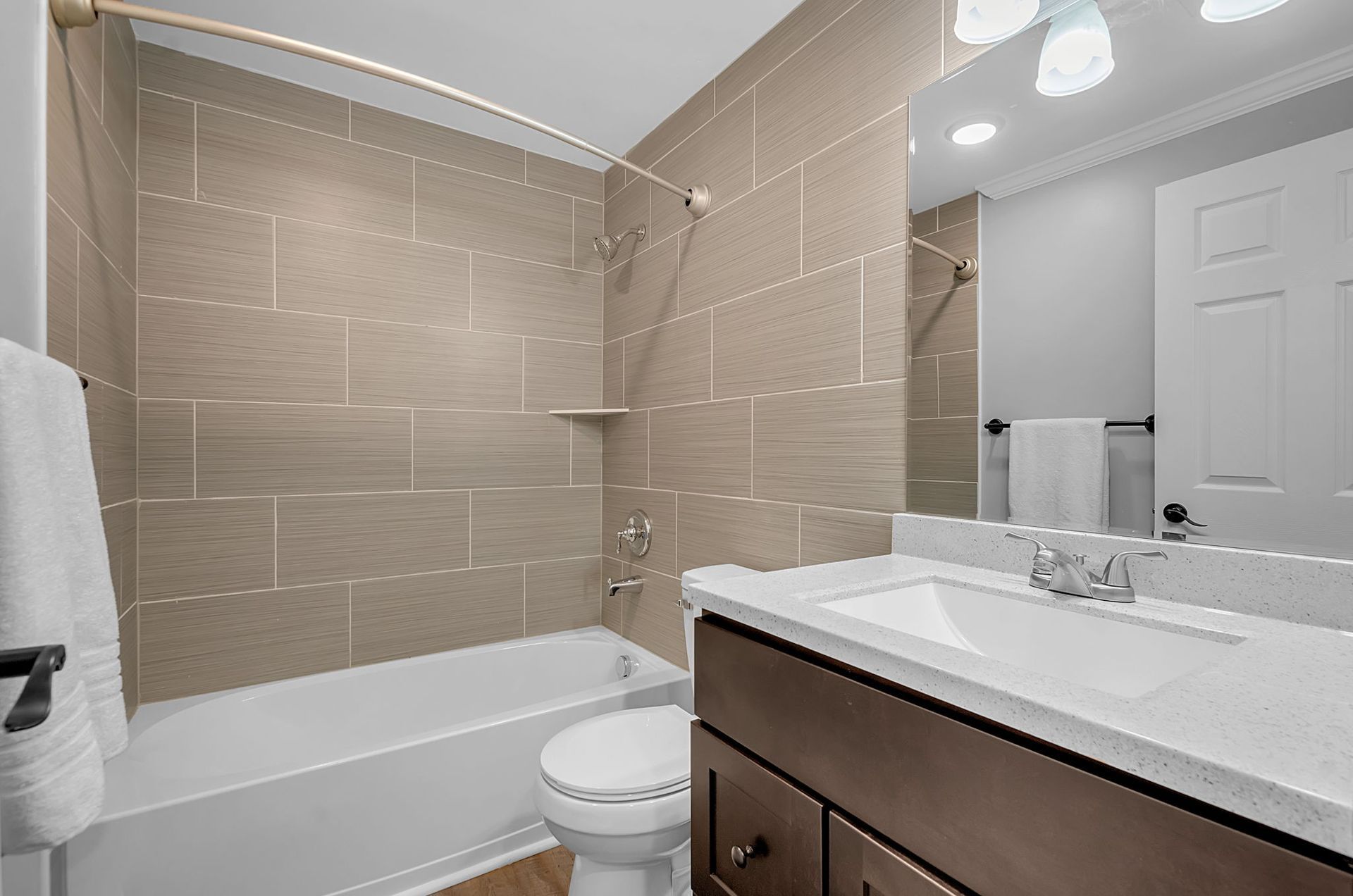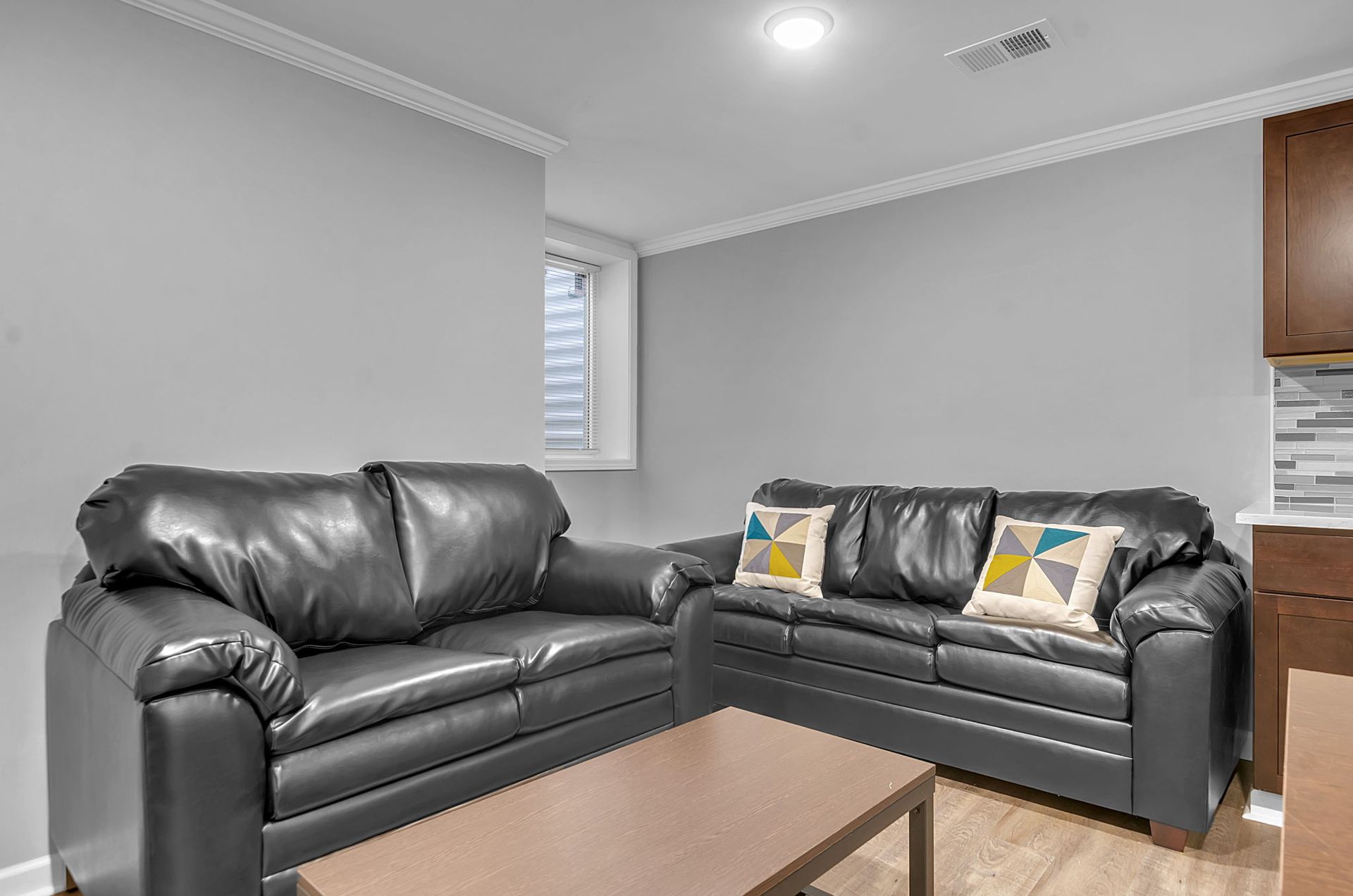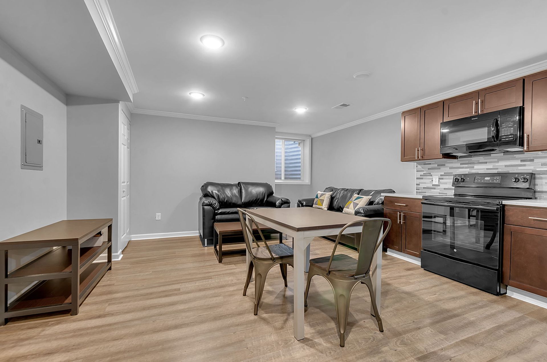 2 Bedroom & 2 Bathroom Garden Level Apartment, Blinds on All Windows, Hardwood-style Plank Flooring, Kitchen & Bath w/ Tiled Accents, Furnished Living Room, Kitchen & Bedrooms, Sprinkler System