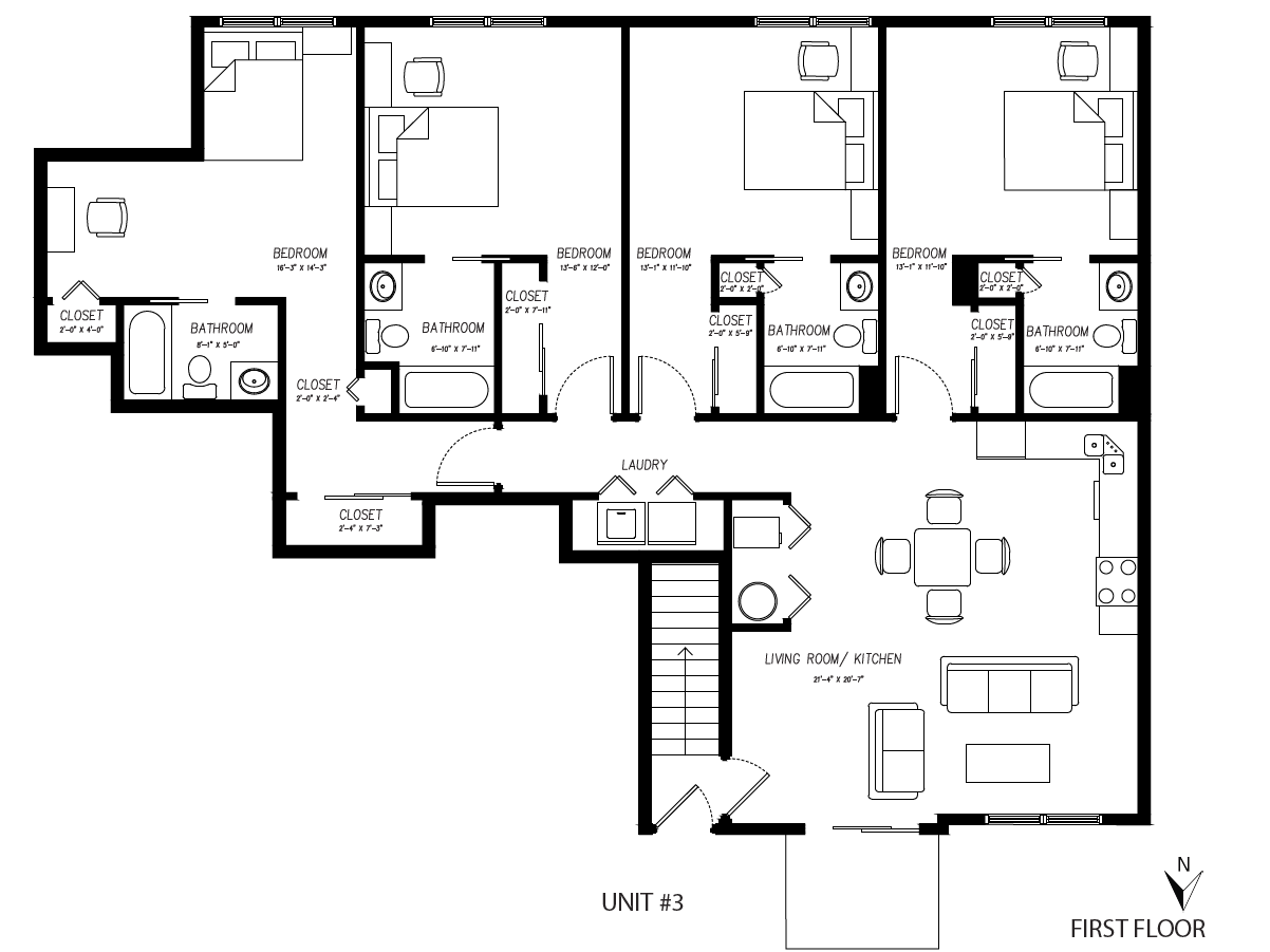4 Bedroom & 4 Bathroom Single-floor Apartment, Blinds on All Windows, Hardwood-style Plank Flooring, Kitchen & Bath w/ Tiled Accents, Furnished Living Room, Kitchen & Bedrooms, Sprinkler System